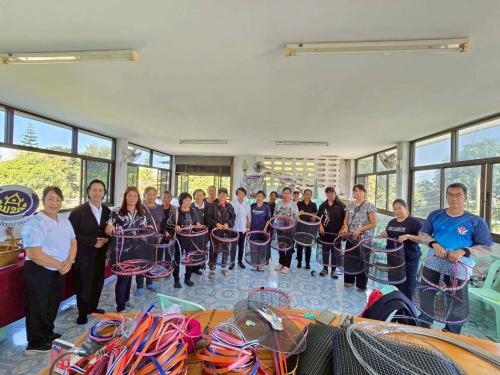5. ฝึกปฏิบัติในการทำตะกร้าคัดแยกขยะ เพื่อสนับสนุนเเนวทางการเสริมสร้างความรู้ทักษะของการประกอบอาชีพ รวมทั้งส่งเสริมให้ดำเนินชีวิตตามหลักปรัชญาของเศรษฐกิจพอเพียง และนำผลกำไรจากการจำหน่ายสินค้าที่ได้สมทบเข้ากองทุนเเม่ของแผ่นดิน เพื่อนำไปจัดกิจกรรมป้องกันเเละแก้ไขปัญหายาเสพติด โดยนางเดือนฉาย คำตื้อ ประธานกลุ่มจักสานบ้านป่าบงเหนือ พร้อมคณะวิทยากรกลุ่มฝึกปฏิบัติ