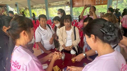 - การทำพวงมาลัยผ้าขาวม้า